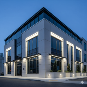 No ambiente comercial, a iluminação da fachada é uma ferramenta poderosa de marketing visual. Uma iluminação para fachada comercial bem planejada atrai clientes e reforça a identidade da marca.