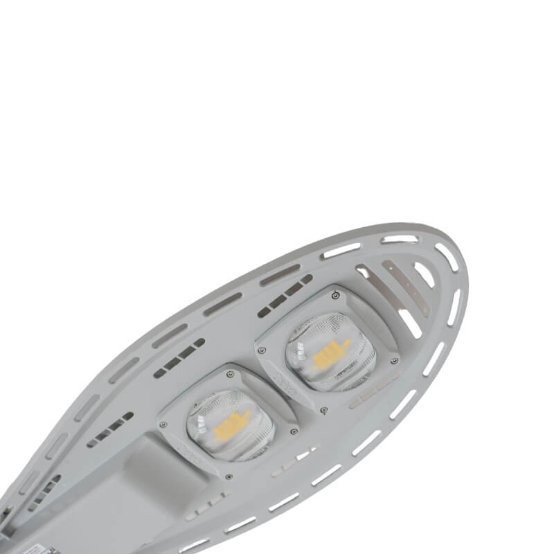Luminaria pública vial con tecnología LED SMD con toma NEMA 7 o NEMA 3 preparada para regulación de intensidad, cuerpo con tratamiento para rayos infrarrojos y ultravioleta con pintura electrostática anticorrosiva en color gris claro (RAL7035) y tornillos de acero inoxidable.