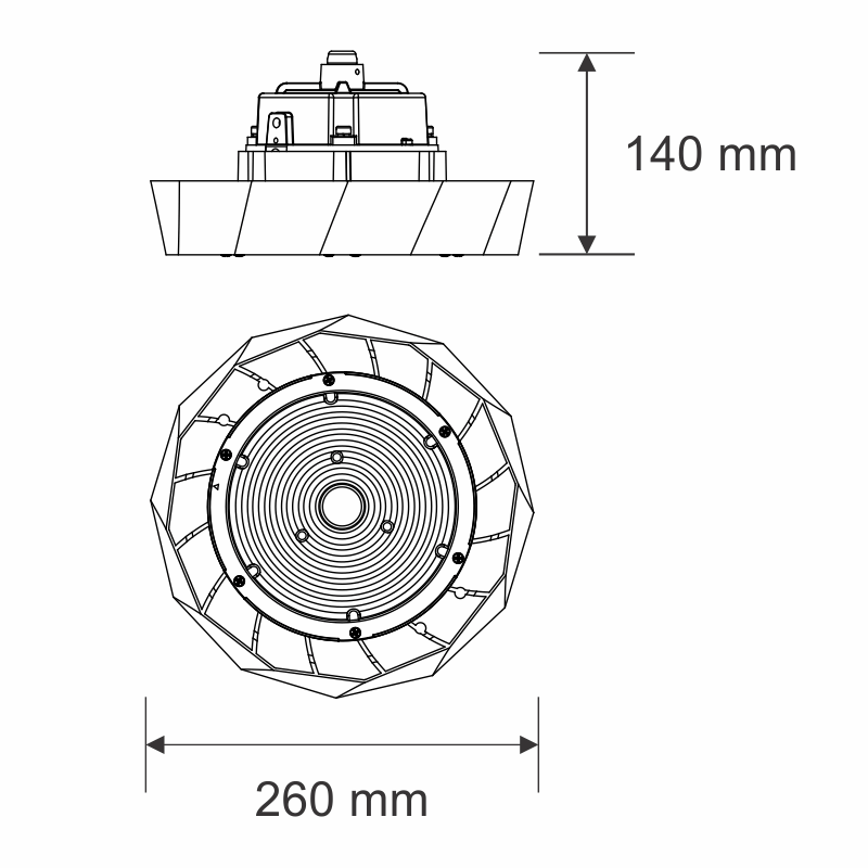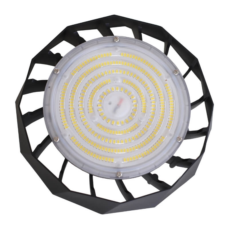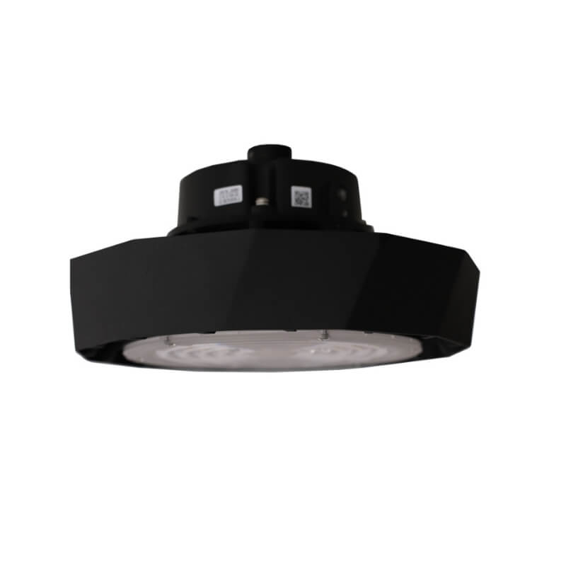 Luminárias LED High Bay para uso geral com vida útil de 50.000 horas e corpo com tratamento para raios infravermelhos e ultravioletas com pintura eletrostática anticorrosiva na cor preta.